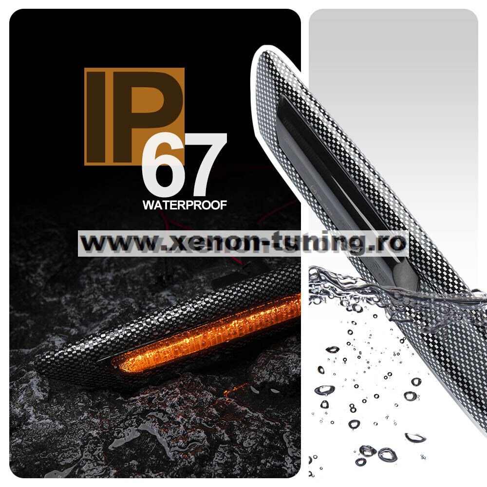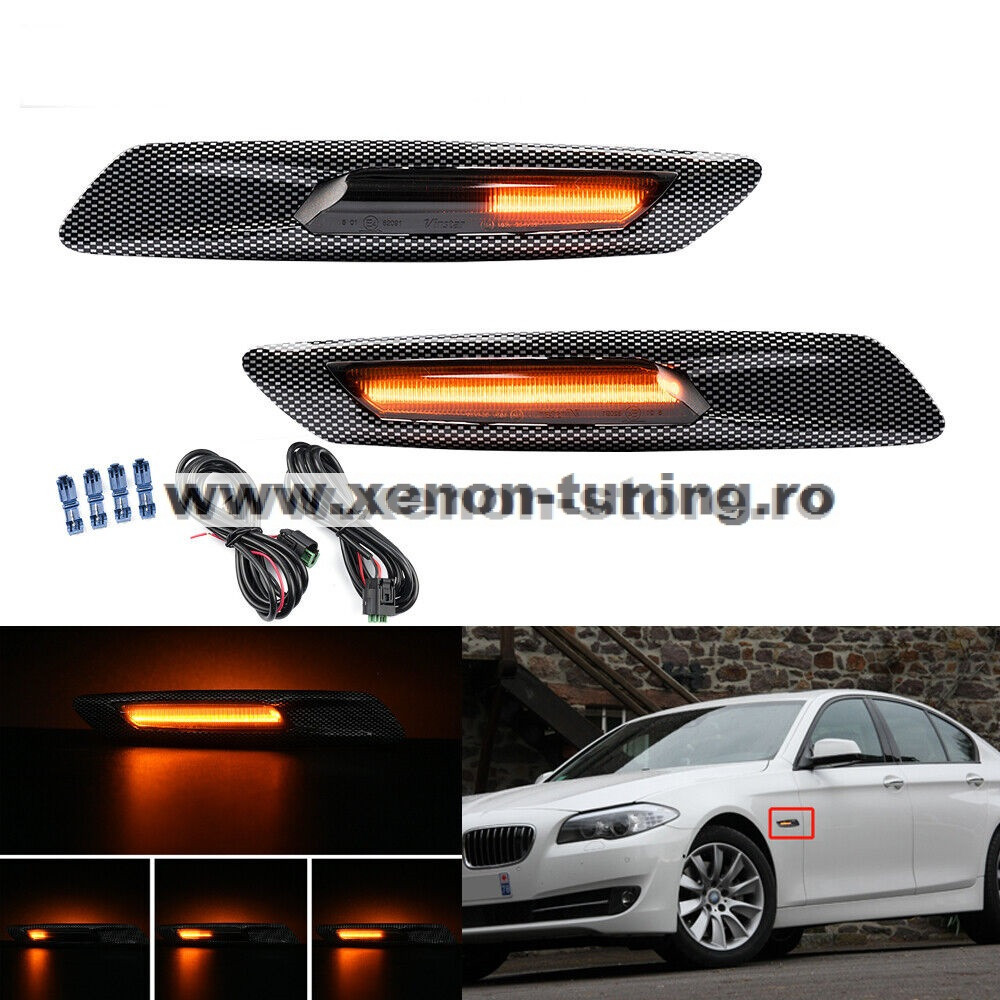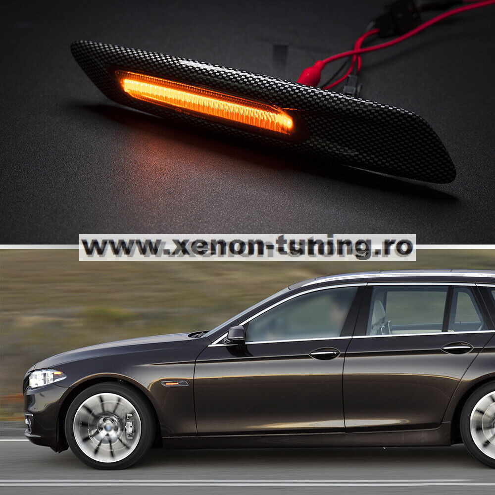 Set 2 Semnalizari Carbon Aripa BMW F10, F11, F07 Dinamice, Secventiale - V-17010535LG